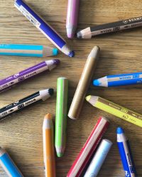 Für feine Linien oder Akzente verwende ich Woodys, wasservermalbare Kinderstifte, die ungiftig sind und sich gut mit meinen Naturpigmenten verbinden lassen. Als Malgrund bevorzuge ich schweres Papier mit 300 bis 360 g, weil die grobkörnigen Stein- und Erdpigmente für mich darauf viel lebendiger wirken als auf Leinwand.